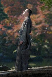 2004年、小田原。呉清源の自宅の庭で、90歳の呉清源と妻の和子、チャン・チェン、伊藤歩が談笑している。